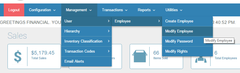 STEP 3: Modify the Password Press Modify User now should be able to login to POS. Logging in will also clear failed login attempts on the POS |