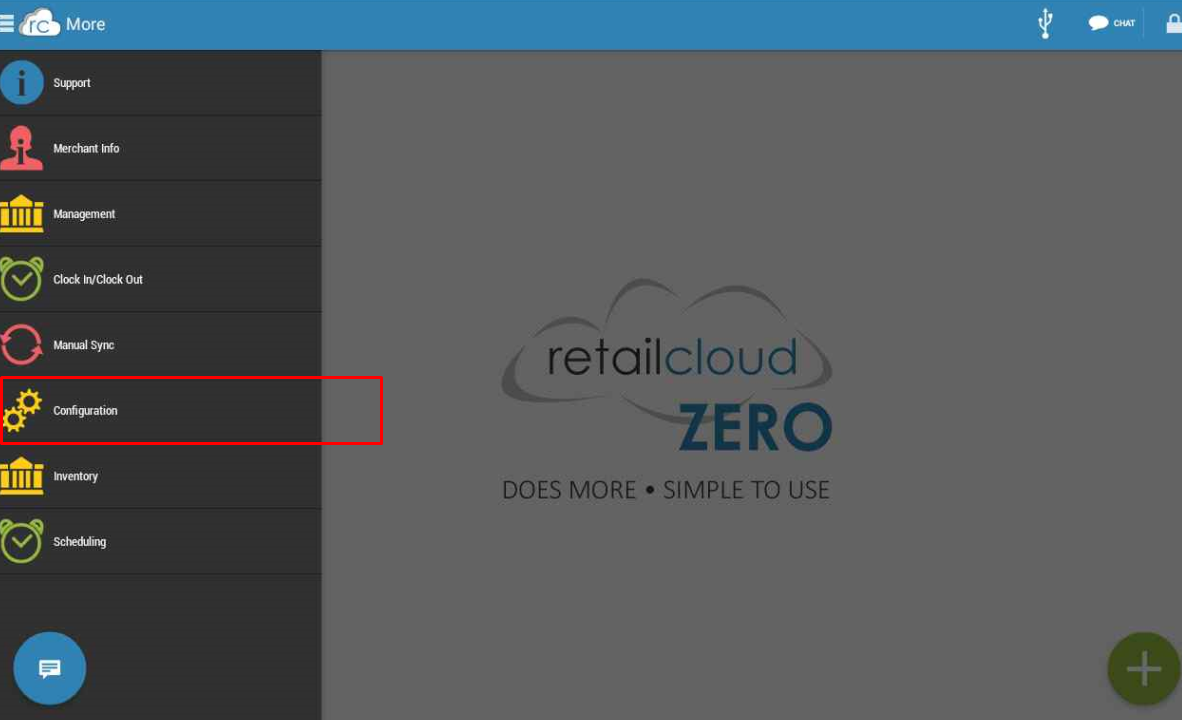 | Configure the application with hardware settings On the main POS screen, in the upper left corner, choose the 3 bars and this will pull up the POS settings menu. From here choose Configuration and follow these steps to configure your POS hardware. | ![]() |